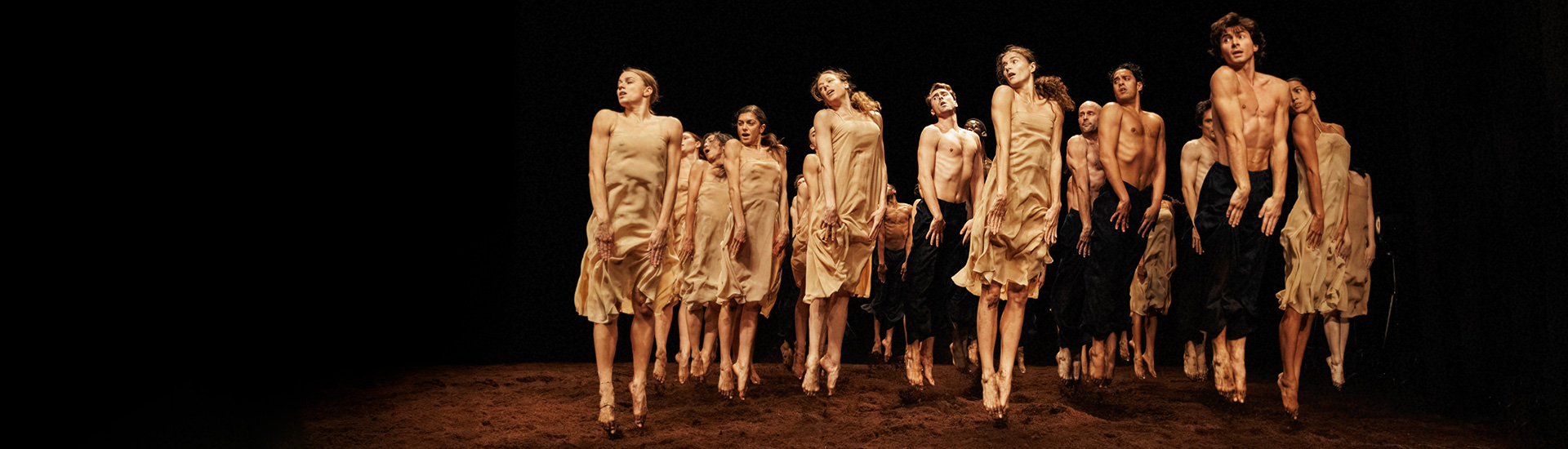Desde 1980, el Tanztheater Wuppertal reúne en un mismo programa Café Müller (creada en 1978) y La consagración de la primavera (creada en 1975), dos obras de Pina Bausch que parecen surgir de mundos opuestos. Frente a la desnudez, el gesto mínimo y la música de Henry Purcell en Café Müller, se alzan la violencia rítmica y el impulso colectivo de la partitura de Ígor Stravinski, en un escenario cubierto de turba húmeda cuyo barro impregna los cuerpos y acentúa la dimensión primitiva del sacrificio. Pina Bausch interpretó su papel en la obra Café Müller hasta poco antes de su fallecimiento en 2009; desde entonces, este ha sido asumido por nuevas generaciones de bailarines.